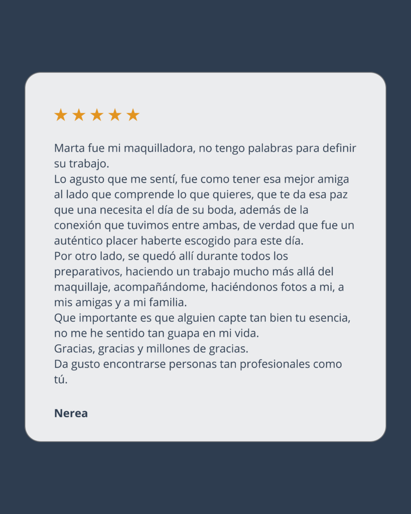Estoy contigo para cuidar tu piel, tu calma y tu esencia. Para que ese día te sientas segura y autentica – no por el maquillaje, si no porque te reconoces en él.
