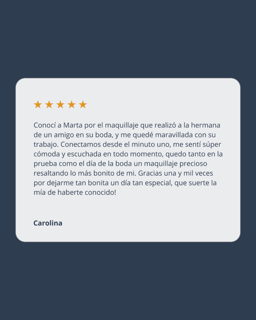 Desde hace más de una década acompaño a mujeres en uno de los momentos más especiales de sus vidas, ayudándolas a brillar sin perderse, sin máscaras, con naturalidad, luz y piel real. Mi propósito no es transformarte, si no reflejar lo que ya eres.
